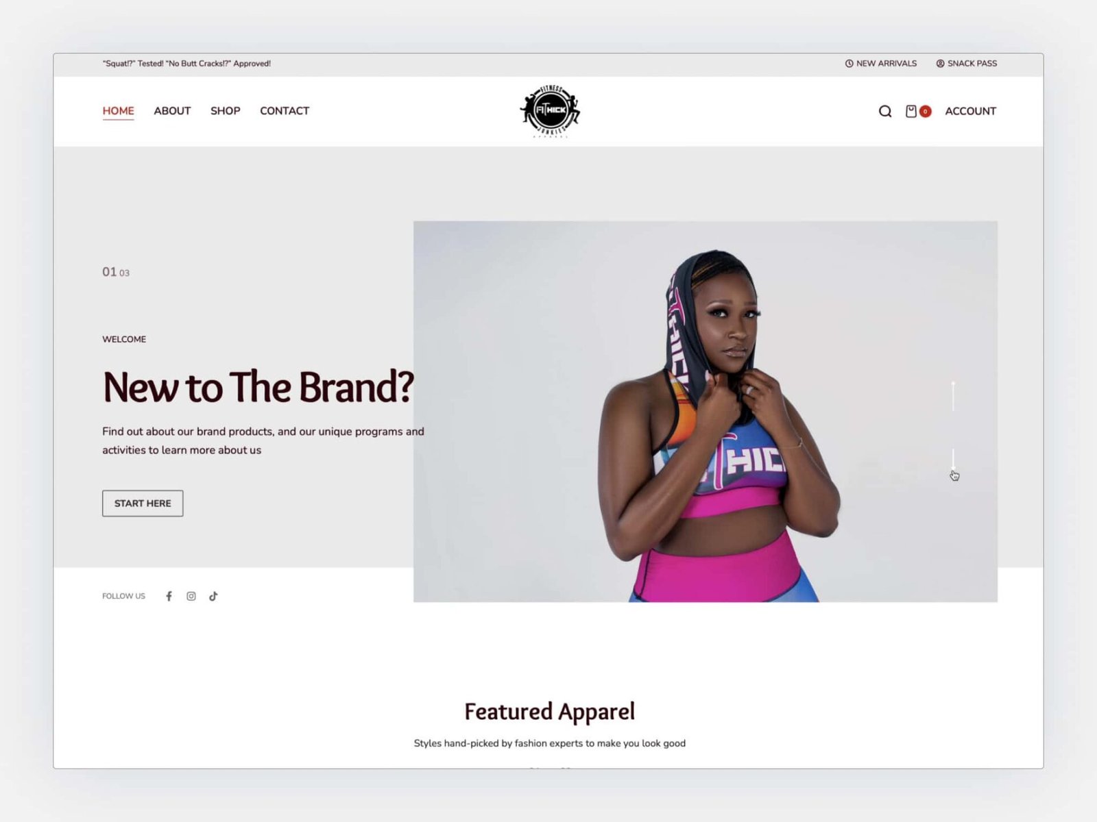 A sleek women’s activewear e-commerce site integrating product sales, memberships, and affiliate marketing.