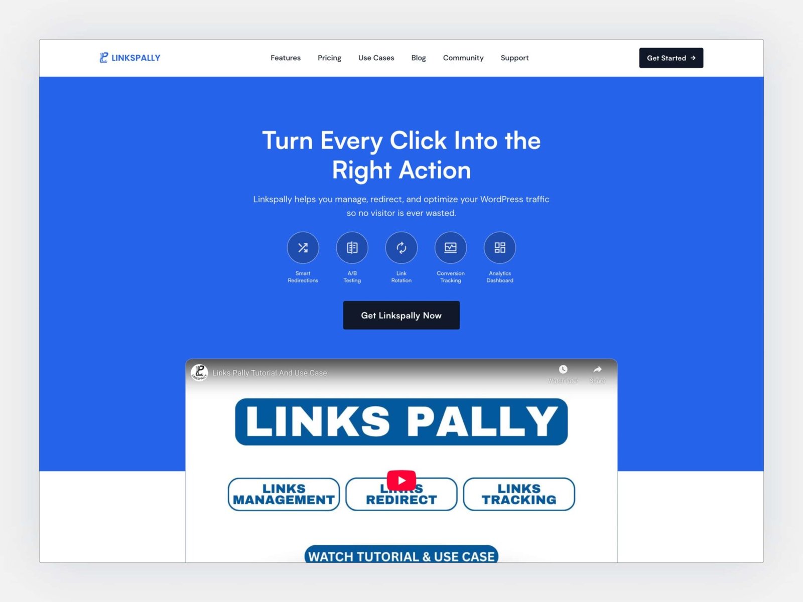 A clean, conversion-driven website designed to introduce Linkspally, a WordPress link management plugin, through clear structure, focused messaging, and smart user flow.