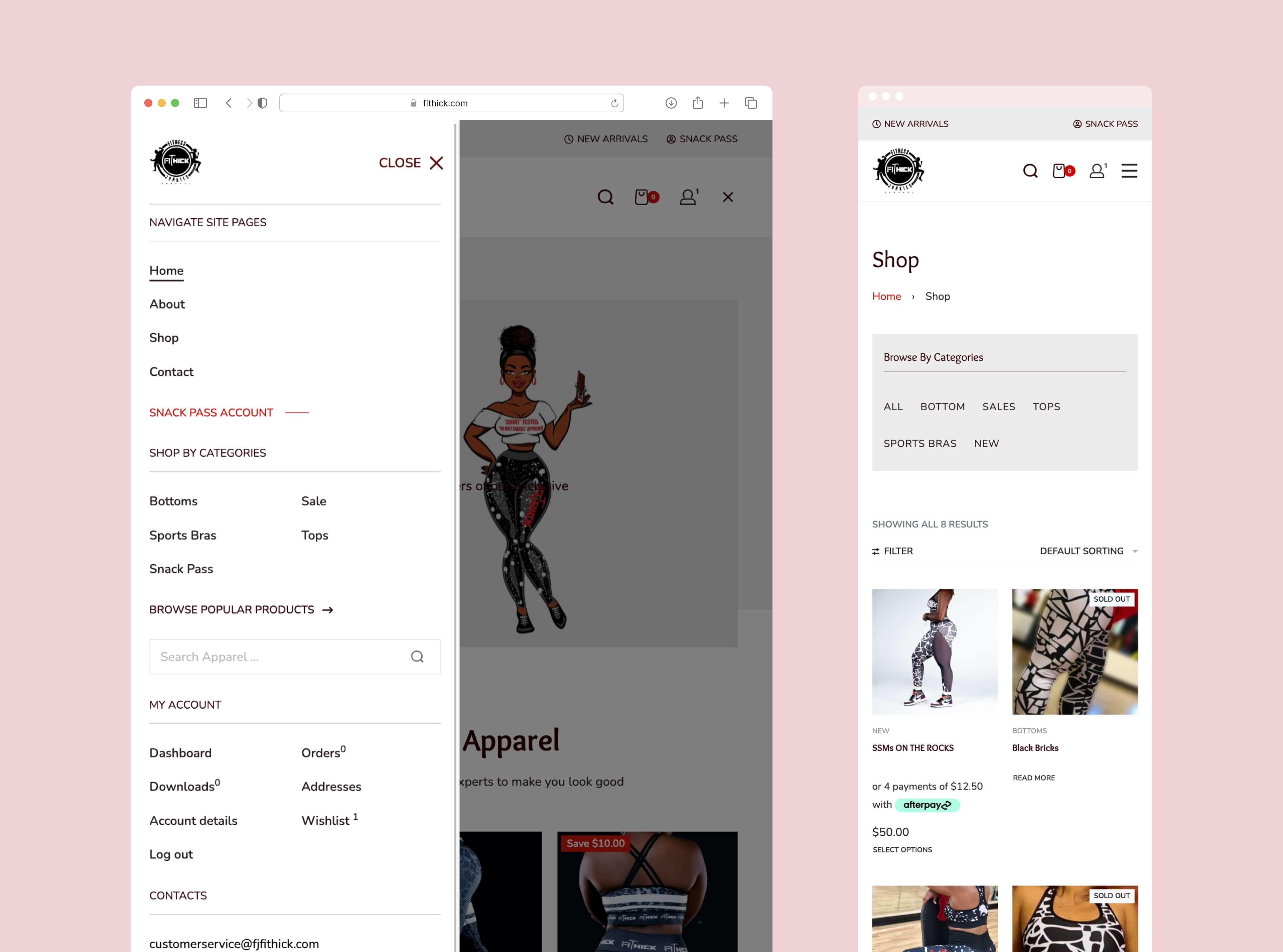 A sleek eCommerce platform for a women’s activewear brand, combining product sales with memberships and affiliate marketing.