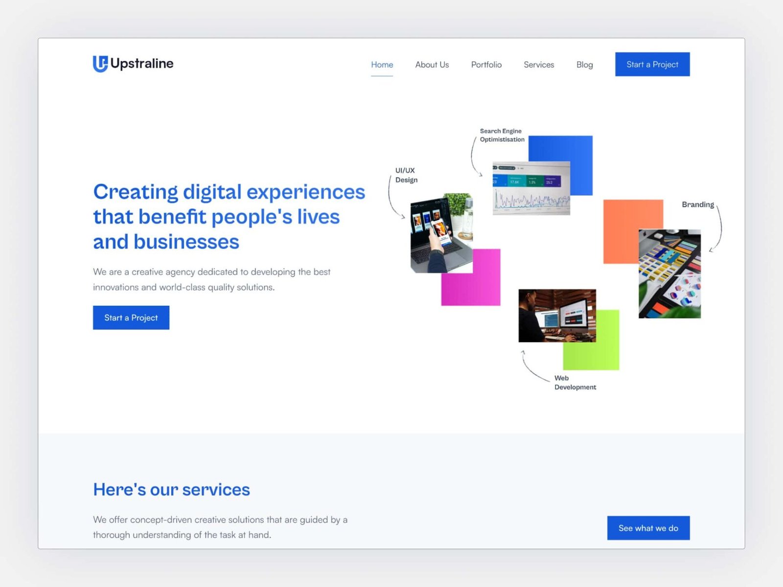 A digital agency portfolio showcasing branding, SEO, and web services via a clean, modern website.